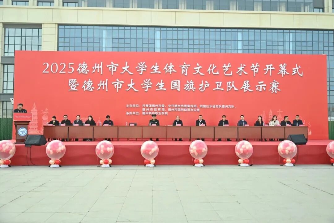 11月15日上午,2025德州市大学生体育文化艺术节开幕式暨德州市大学生国旗护卫队展示赛在德州科技职业学院(德州校区)举办。德州学院、山东华宇工学院、德州职业技术学院、山东文化艺术职业学院、德州科技职业学院、德州工程职业学院等6所高校的1500余名师生参加活动。