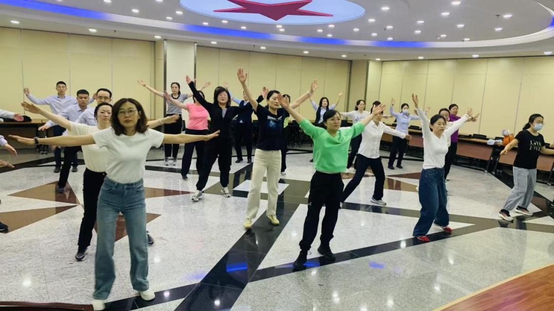 在热身拉伸环节,考虑到中老年居民关节灵活性较弱,成员们采用“手把手”教学模式,示范颈部左右环绕、肩部绕环、腰部扭转等基础动作,强调“缓慢发力、循序渐进”,避免突然扭转造成肌肉拉伤。针对青少年常见的久坐肩颈僵硬问题,特别加入“毛巾拉伸法”——双手握住毛巾两端,举过头顶向两侧拉伸,帮助打开胸腔、放松斜方肌,现场居民跟着节奏认真模仿,不时询问动作细节。