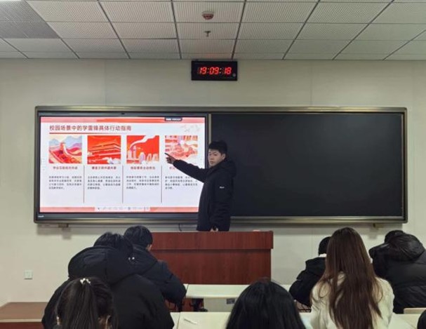 学校以思想引领为抓手,推动雷锋精神入脑入心。各级团组织开展专题学习、主题宣讲、分享交流等系列活动,通过讲述雷锋事迹、诵读《雷锋日记》、观看纪录片、分享感悟体会等形式,引导青年学子读懂“螺丝钉”精神”的深刻内涵。青年宣讲团走进班级、深入支部,用身边榜样、鲜活故事传递精神力量,让同学们在学习中坚定信念、在交流中凝聚共识,让雷锋精神真正内化于心、外化于行。