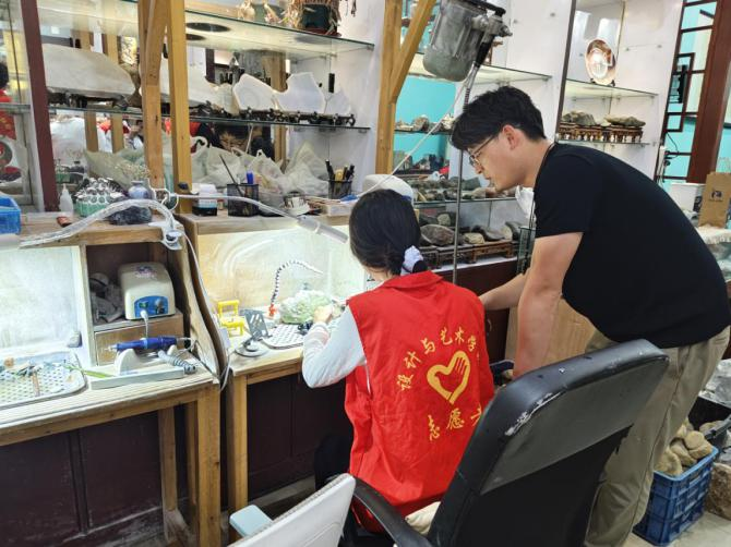 7月12日至18日,设计与艺术学院围绕“千年玉韵・匠艺寻踪”主题,开展非遗玉雕技艺社会传承与创新发展调查。团队通过市场走访、街头采访、传承人对话及新手体验等方式,探寻古老技艺的当代生存轨迹,梳理传承现状,探索创新路径,为这项承载千年文化的传统技艺注入新活力。
