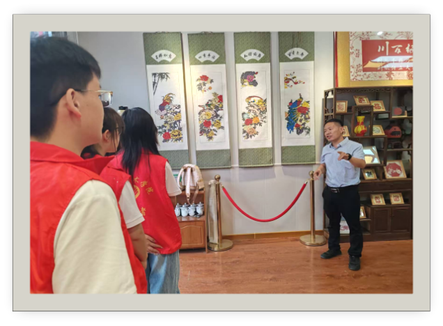 团队有序进入博物馆,在跨越时空的剪纸艺术展示长廊中,深入领略其源远流长的发展脉络。从细腻人物情思到灵动生灵百态,从恢宏历史长卷到鲜活民俗图景,每幅作品都是技艺与匠心的结晶。在张建志馆长引领下,团队循着德州剪纸从民间萌芽到形成地域风骨的脉络,读懂阴剪阳刻间的虚实哲学,领悟作品中沉淀的民俗记忆与历史温度,让指尖艺术的文化根脉深深扎根心中。