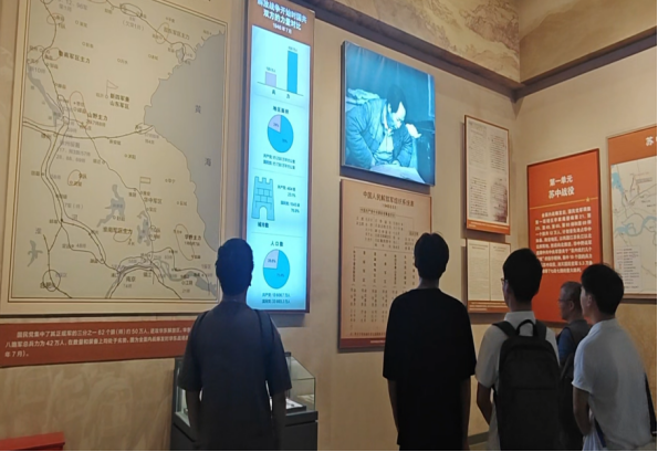 步入纪念馆,大厅中央华东野战军主要领导人的群雕庄严肃穆,两侧墙上的战役图谱与军功奖章无声诉说着峥嵘过往。队员们被这庄重氛围深深震撼,驻足默哀,向为民族解放事业献身的先烈们致以崇高敬意。