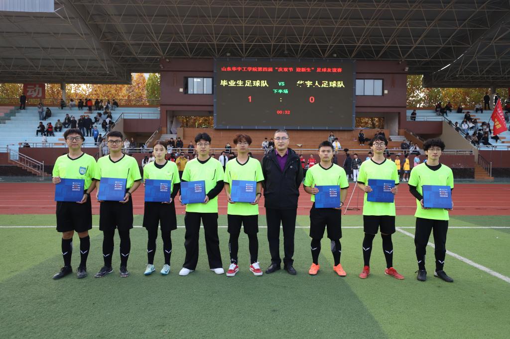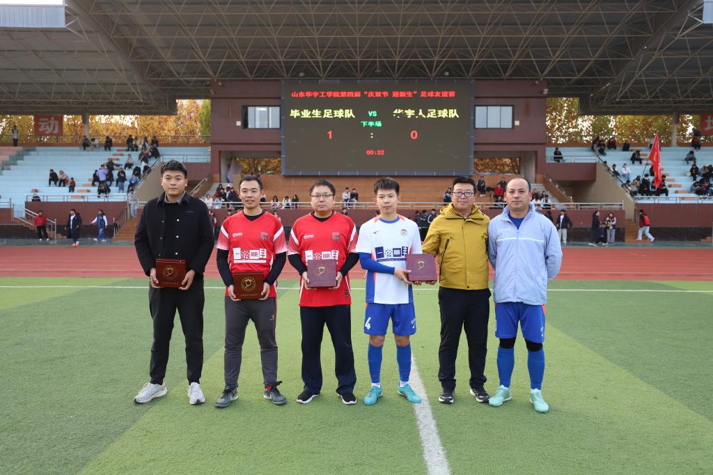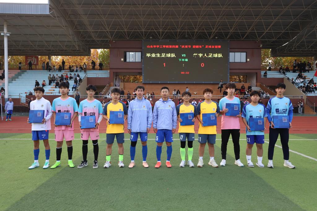 11月8日,历时一个月的山东华宇工学院第四届“迎新杯”足球友谊赛迎来收官之战,由学校教职工为主组成的华宇人队凭借良好的心理素质和技战术水平点球大战中5:4胜出,最终以6:5的比分战胜毕业生队,从而以五战全胜的战绩再次捧得“迎新杯”冠军奖杯,市直联队获得亚军,22-23联队、毕业生队、新生B队,新生A队分获第三到六名。