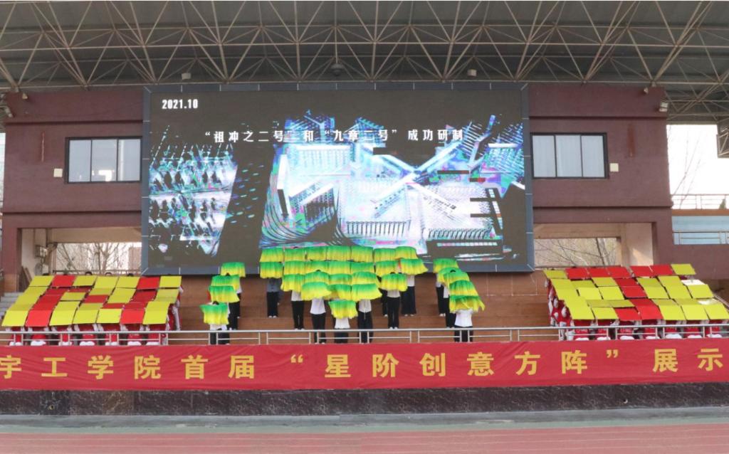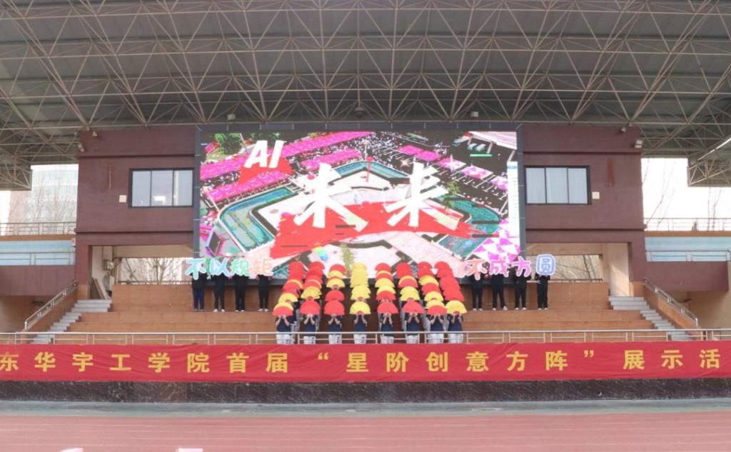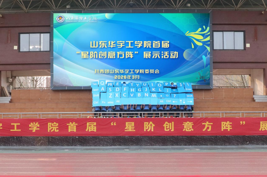 充分发挥第二课堂育人功能,着力培养学生创新意识、团队协作、实践动手、艺术表达等能力,彰显青年学子昂扬向上的青春风采。3月24日,我校首届“星阶创意方阵”展示活动在学校体育看台成功举办。
