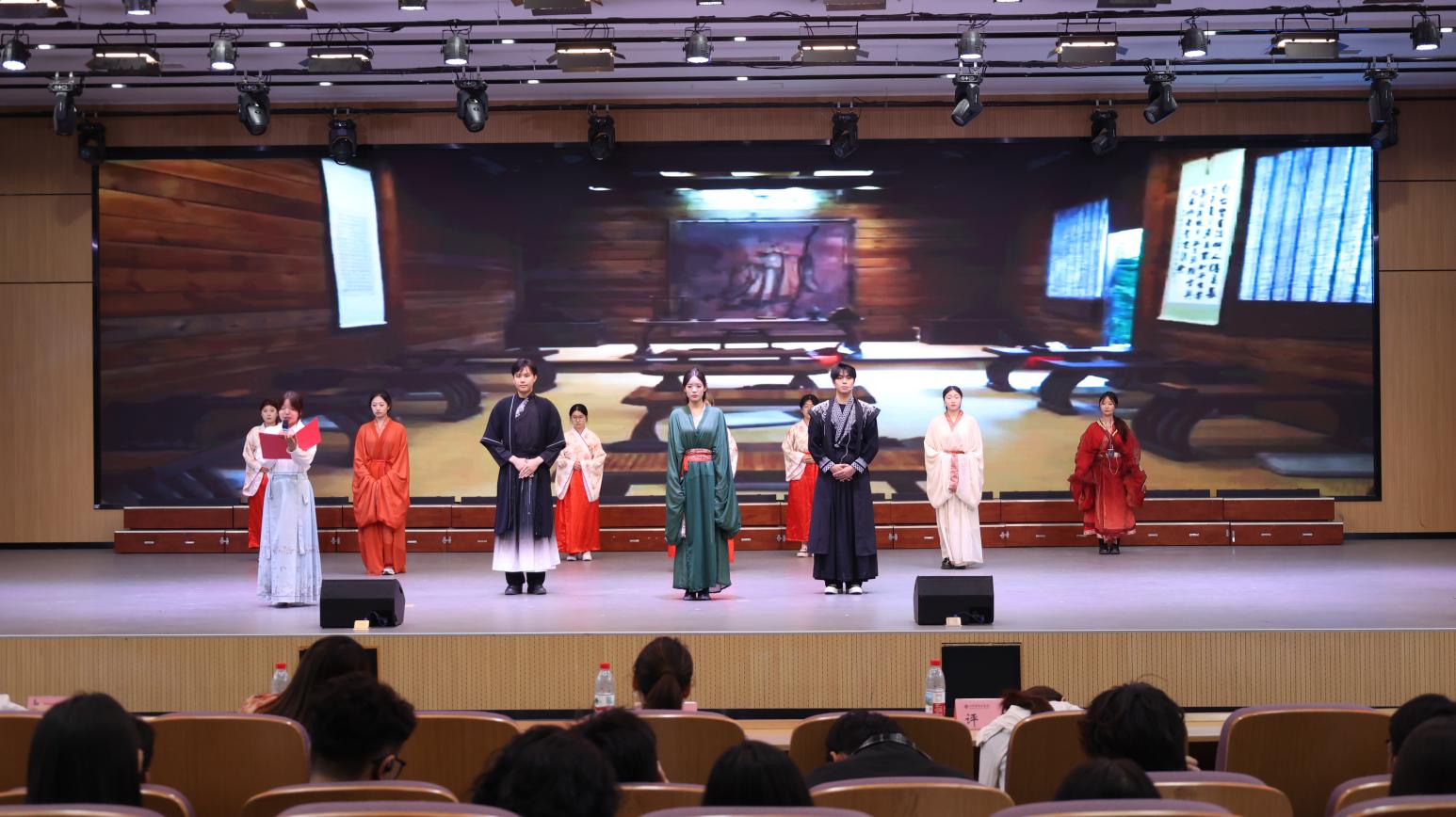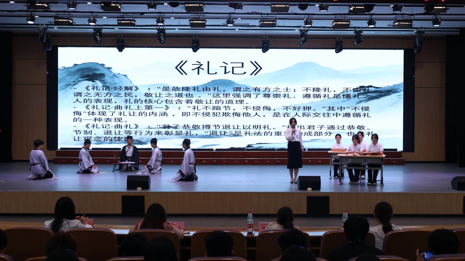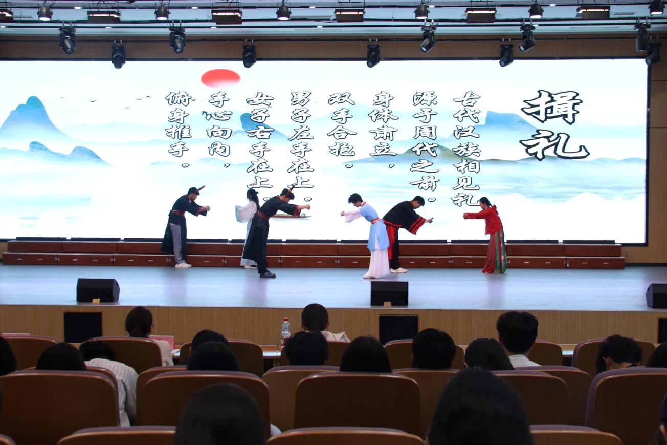 本次赛事设置传统礼仪展示、礼仪知识竞答与才艺展示三大板块,各二级学院通过半个月精心筹备,系统研习传统礼仪文化,遴选出兼具专业实力与特色的参赛团队。决赛现场,《衣冠礼序:千年风华》等原创礼仪展演节目,通过行止坐卧、揖拜尊师、及笄仪典等标准化礼仪展演,配合考究的汉服造型,生动诠释中华礼仪之雅韵与服饰文化之精粹。穿插其间的古典舞蹈、诗词吟诵及民乐演奏,更以多元艺术形态构筑沉浸式文化体验,现场观众反响热烈。经综合评审,能源与建筑工程学院代表队凭借出色表现夺得桂冠。