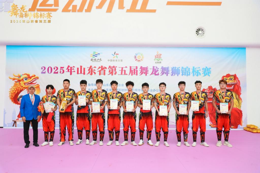 近日,“好运山东”2025年山东省第五届舞龙舞狮锦标赛在日照圆满落幕,我校龙狮队凭借出色发挥,在赛场上大放异彩,取得大学组一等奖2项,荣获道德风尚奖。