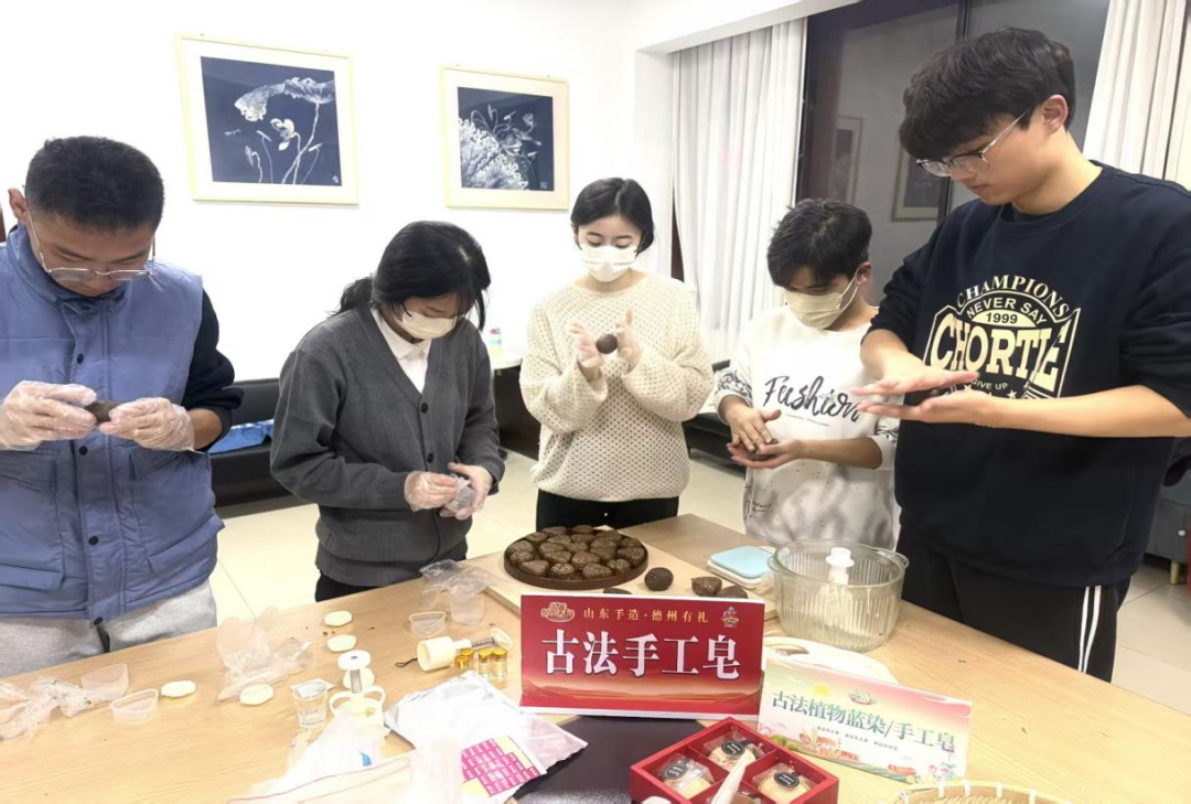 理论讲解结束后,动手制作环节正式开启。指导老师耐心指导成员们调配原料,最后利用各式模具进行外观修饰。大家专注地在一步步操作中感受手工皂“慢工出细活”的独特魅力。原本普通的原料,经过双手的创作与时间的沉淀,变成了造型别致、香气宜人的手工皂作品,每一块都凝聚着制作者的巧思与心意。一块块亲手制作的手工皂,不仅是手作技艺的成果,更是传统造物理念在社团成员心中落地生根的见证。本次活动以沉浸式体验打破了传统手工技艺与日常的距离,让成员们在亲手操作中触摸到手工制作的温度,真切体悟到传统造物中蕴含的匠心与美好,既锻炼了动手能力,更培养了对传统手工文化的喜爱与认同。